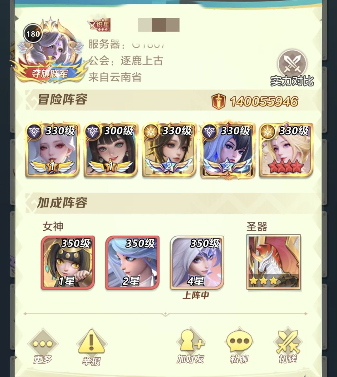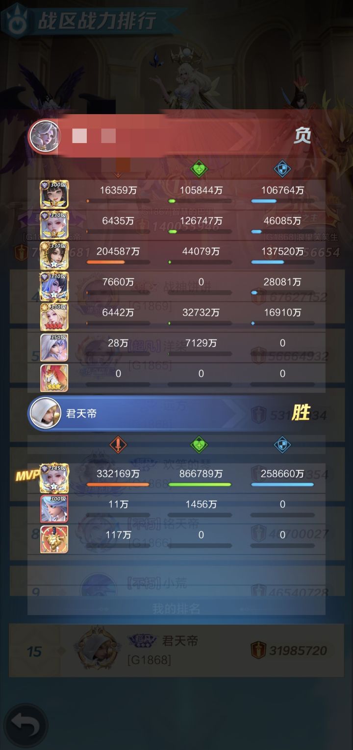 ,这次冰冰首次返场,也总算给她上了神9,是时候实战来评测下了。如上图所示,我阵容单上冰冰,也能暴揍咱们战区跑路的榜一大佬,而我的冰冰硬件的搭配是:装备:星瀚三件套(差5个金焰,等下轮花灯
