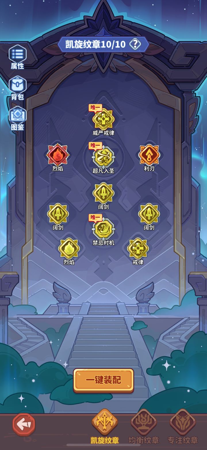 ③纹章:第一页专注优先选择阔剑比选择烈焰、戒律的要高出7%左右攻击力,利刃除了锋利利刃(1.5倍加成的)可以留,其他都建议带阔剑;第二页基本都是洞察,也可以带惩击,也是加的英雄攻击力;第三页选择号角比选择交错等等要高出5%左右攻击力(注意这里是全体攻击力,是绿字)。