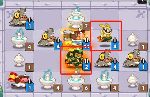 我们不难看出投手熊的扩散是对左右两个格子内的萌宠有效,所以合成投手熊的时候我们尽量保证,他的左右两边是有萌宠或者障碍物的,萌宠的站位,和他升级扩散的收益最大化是我们应该去考虑的问题,而不是不考虑一味的直接去合成。
