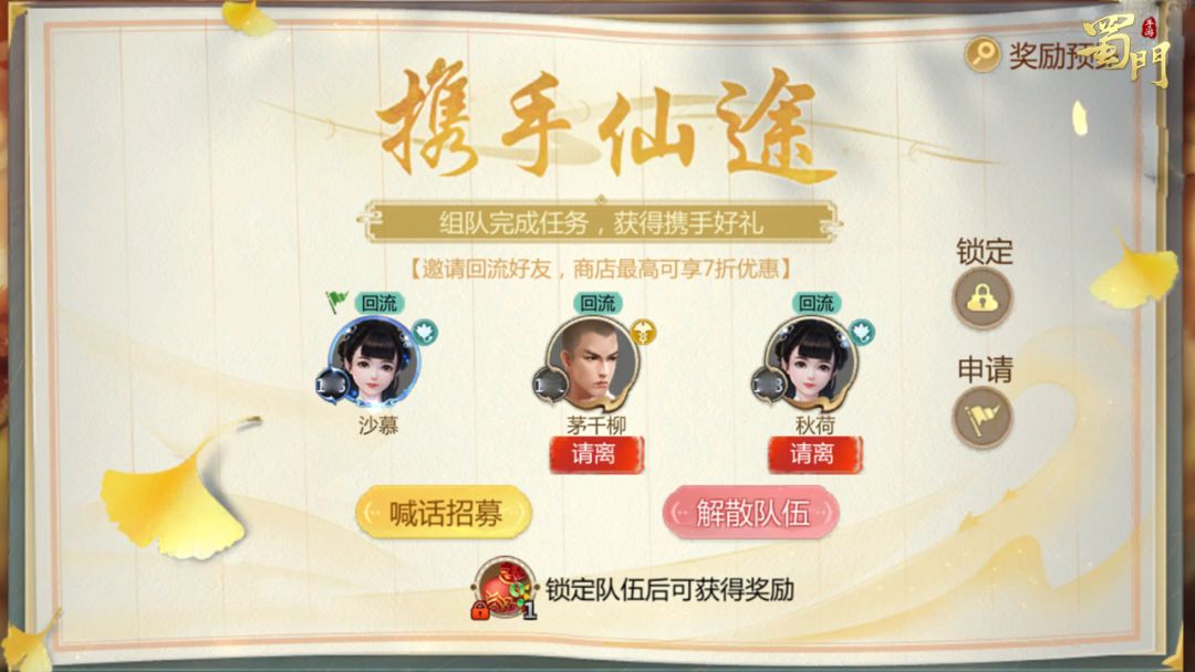 如果携手仙途的队伍中有超过14天未登录的回归蜀友,还可以享受该活动商店的超高折扣来购买兑换物品哦!