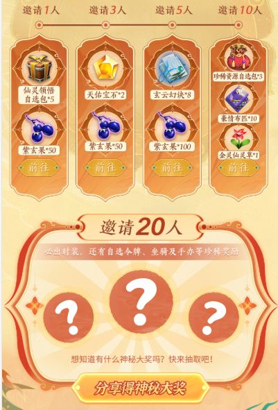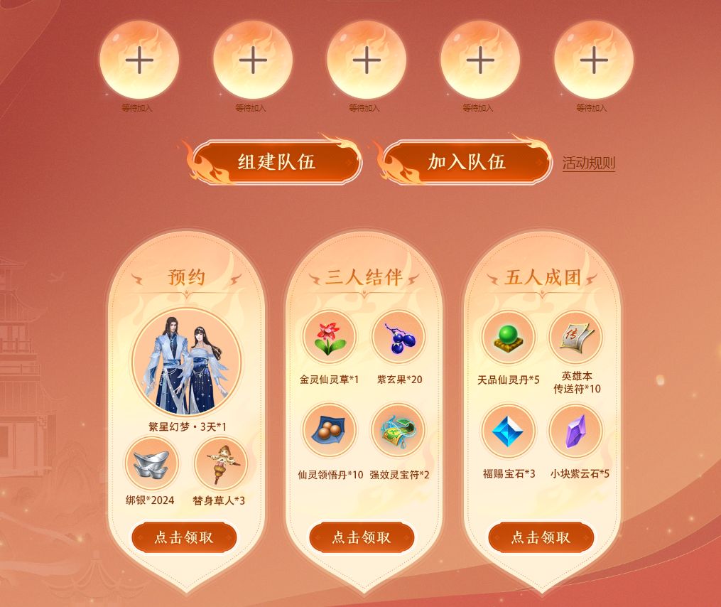 参与全服预约,达到指定人数后即可发放包括5阶金装自选、灵石包、仙灵领悟丹在内的丰厚奖励!动动手指登录后参与预约本期大服,即可为全服解锁福利!