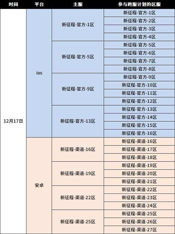 我们已于12月17日开启以下服务器数据互通(图片所示)。服务器数据互通后,原服务器入口依然保留,指挥官依然可以选择原服务器名进行登入。