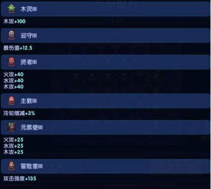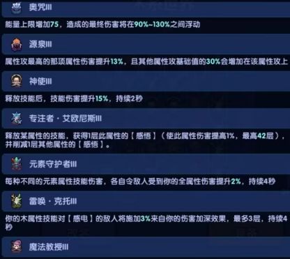 由于木系元素易伤并不高,所以选择主c带雷霆,主c自己的安也可以更换为海豚。