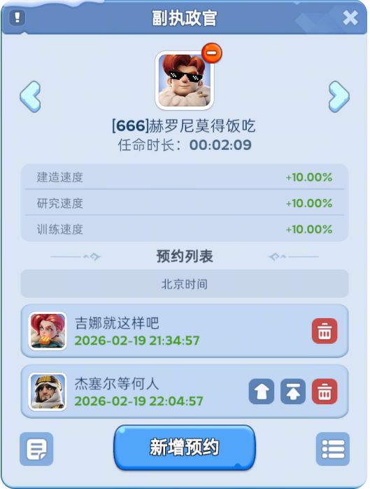 支持执政官和至高执政官对官职预约列表进行向上调整操作;