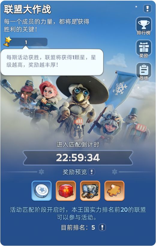 2、新增活动:联盟大作战——两个联盟间的较量,召集盟友,获得积分赢取奖励,助力联盟获得胜利。