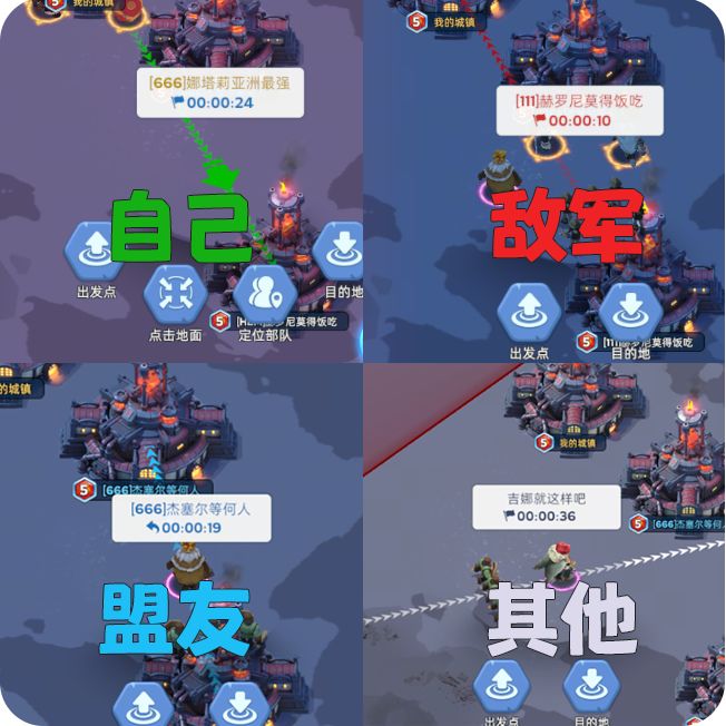 9、部队行军信息优化:自己、盟友、敌军及其他玩家对应的颜色进行了优化,便于您快速识别和区分。