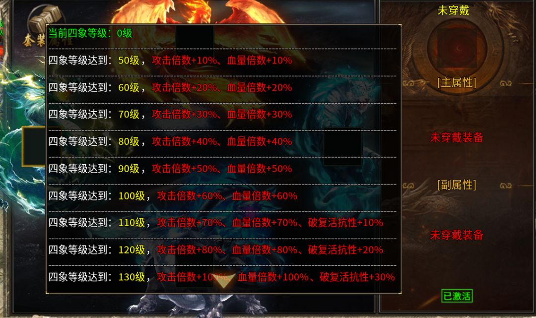3.可使用相同且激活全副属性的四象之魂作为材料重置四象之魂,重置时可使用四象神水锁定副属性词条!