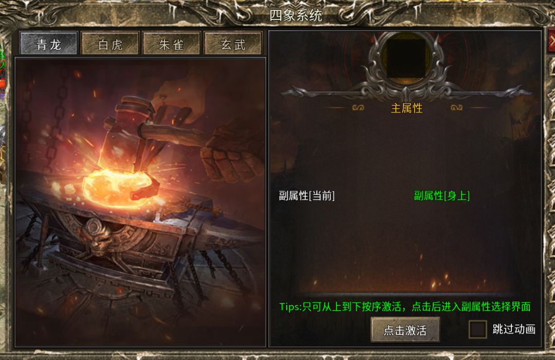 2.四象之魂除主属性之外,还可使用四象精魄激活副属性词条,激活副属性词条时可从五个选项中随机抽取一个副属性!