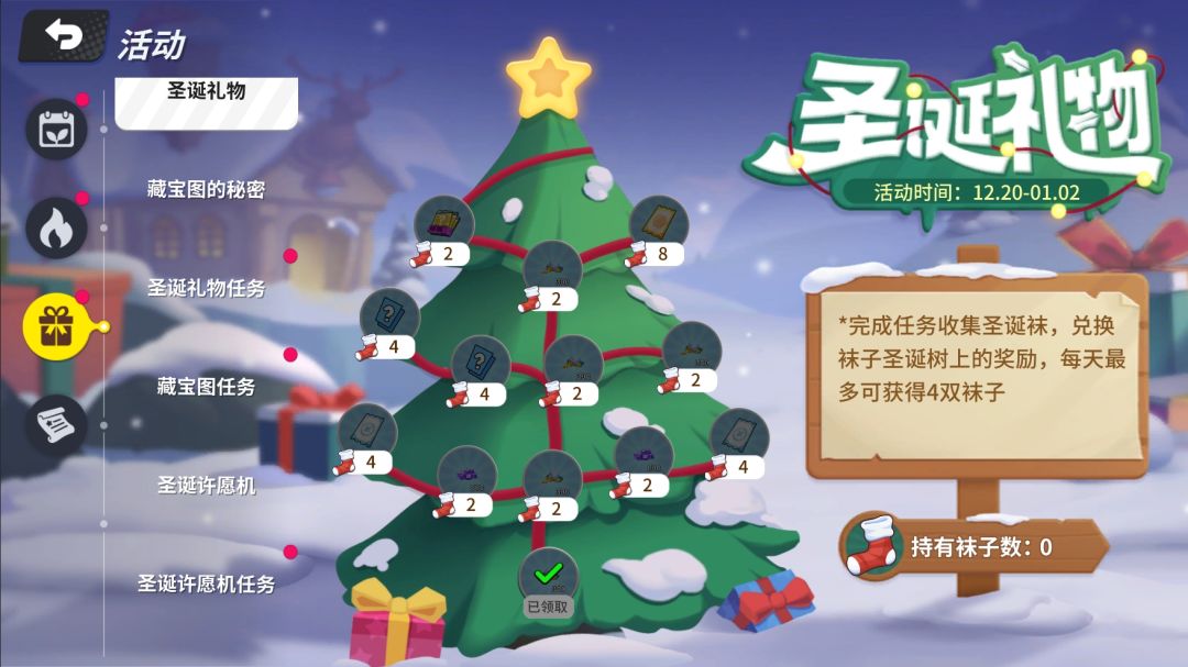 说到圣诞节,小扫扫最期待的就是能收到【圣诞礼物】的活动啦——不过礼物需要袜子兑换,希望不会收集到臭袜子!
