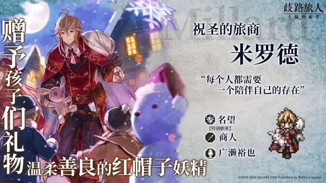 2、新增旅人:“祝圣的旅人们”5★商人“米罗德”和5★猎人“卢米斯”,活动期间每次引导可得“祝圣的导片”“祝圣的导片”×150可兑换“商人米罗德的圣导印”或“猎人卢米斯的圣导印”中的1个