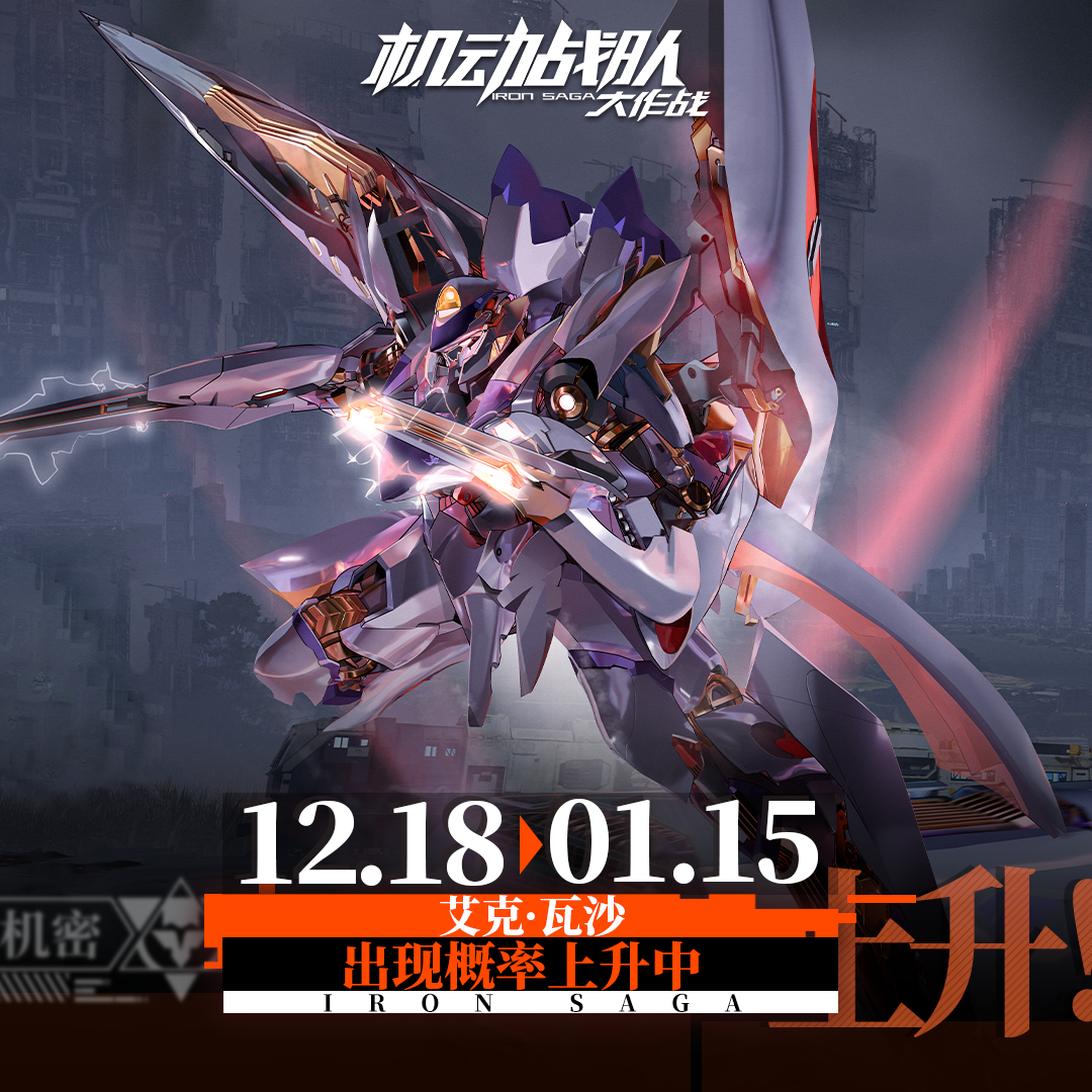 PS:联动机体【无垠号Prime】卡池将于12月18日正常关闭,更换为【艾克·瓦沙】卡池,各位指挥官请注意及时使用【高级代金券:无垠号Prime】。