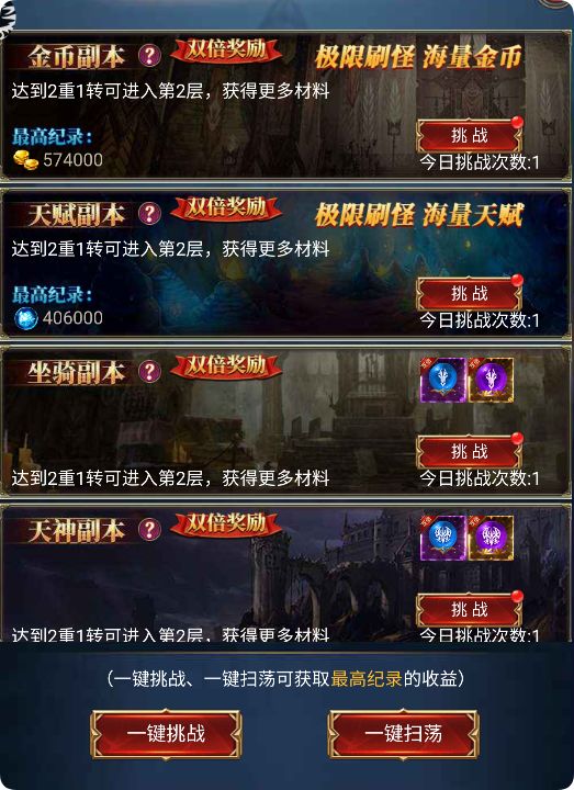 今天带小伙伴们来了解一下游戏内的每日试炼玩法,每日试炼有各类材料副本,根据不同等级开放不同难度。