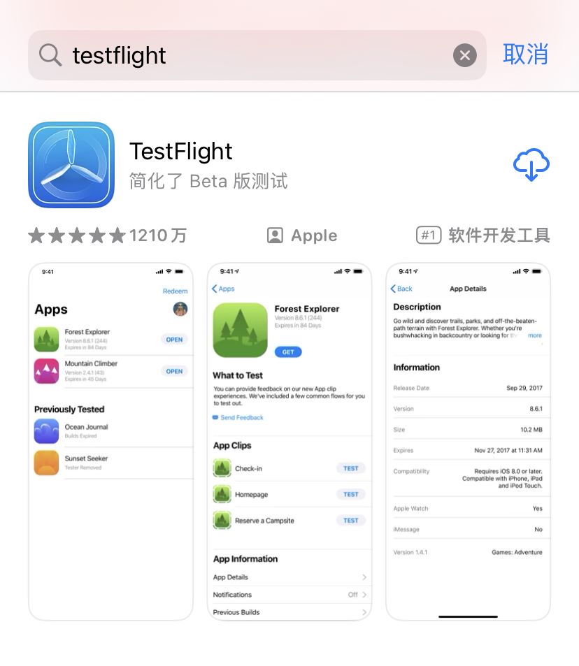 - 步骤1:点击App Store下载并打开“TestFlight”