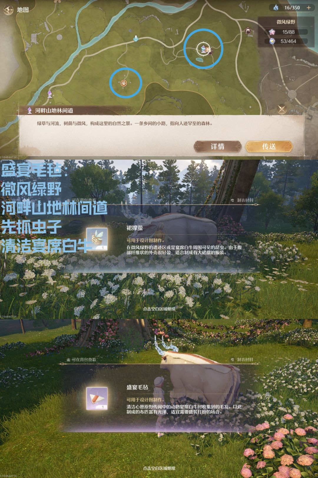 3.盛宴毛毡:微风绿野——河畔山地林间道——清洁宴席白牛(要先抓虫子才可以清洁)