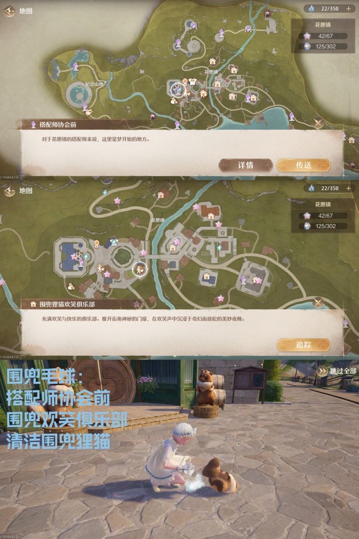 1.围兜毛球:搭配师协会前——围兜狸猫欢笑俱乐部——清洁围兜狸猫