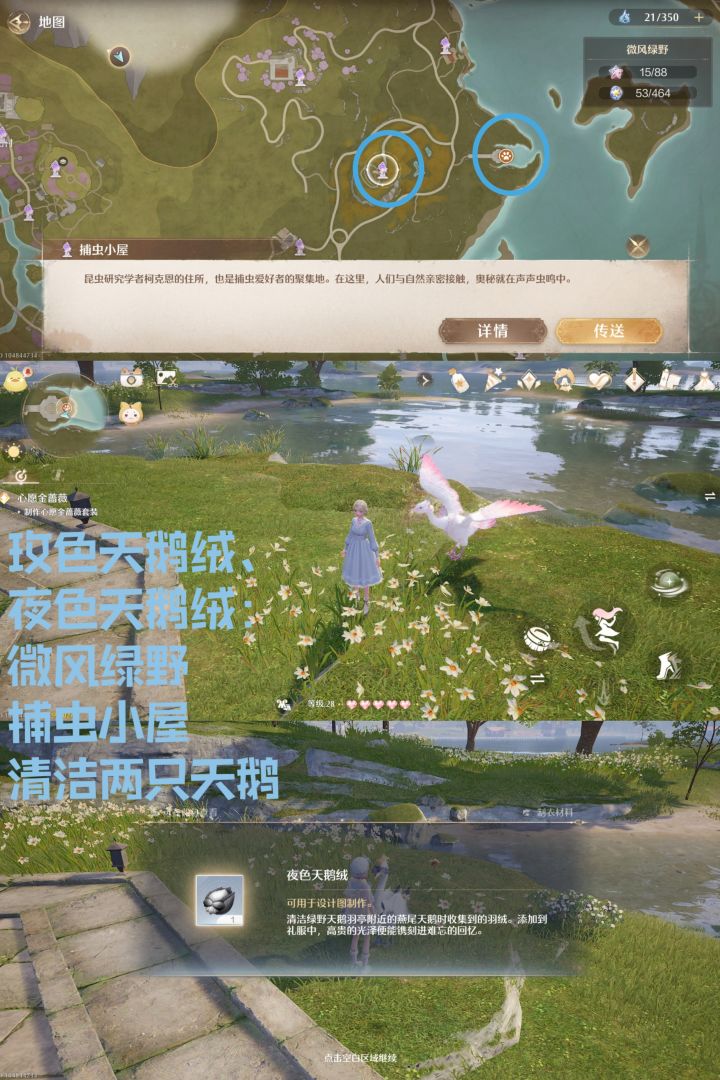2.玫色天鹅绒、夜色天鹅绒:微风绿野——捕虫小屋——清洁燕尾天鹅和玫冠天鹅(等上岸了才可以清洁)