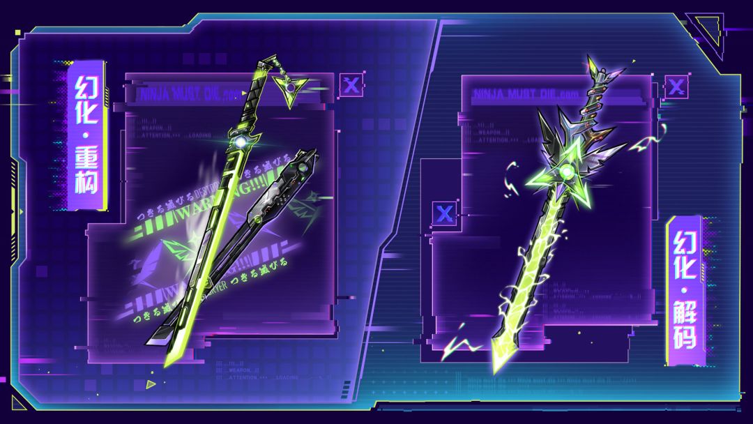 为了破析混沌城市中的邪恶代码,「虚域驰侠」对他的贴身武器进行了改造——在数据洪流与超强信号的作用下,「重构」诞生了。刀身的荧光如呼吸般闪烁,与「虚域驰侠」的战甲完美融合。更重要的是,经它提取并重组优化后的代码能够对未来战斗形态进行虚拟预演,使其在战场中能够迅速解析并破坏敌方的防御代码,让敌人的保护机制瓦解崩溃。