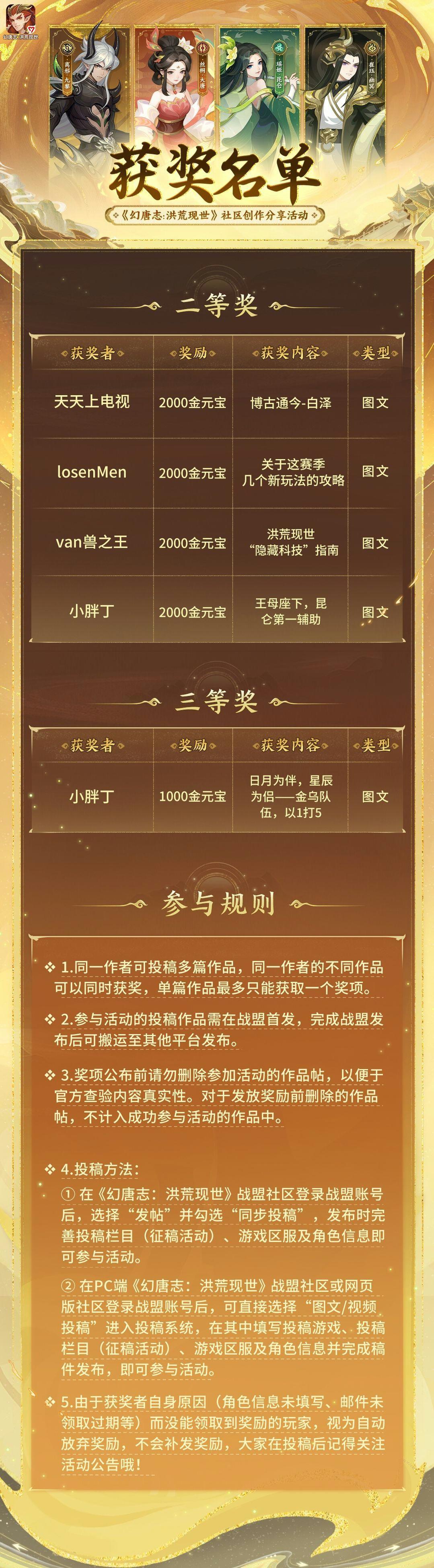 《幻唐志:洪荒现世》社区创作分享活动获奖公示第三期出炉啦,感谢各位玩家的支持和捧场!让我们一起来看看有哪些玩家获得奖励吧~