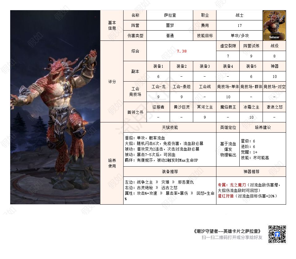本帖为个人发布的有关潮汐守望者的系列攻略的索引贴,方便查找。**关于英雄综合评分算法说明**目前,综合评分是在单项评分的基础上,结合英雄泛用程度,用一套算法计算得出,大部分英雄评分与使用感受符合,不排...