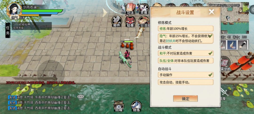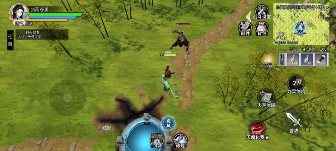 抓宠物和采集药草时需要在战斗设置里面选择 隐气 这样不会遇到怪物也会大幅度降低寿命的消耗