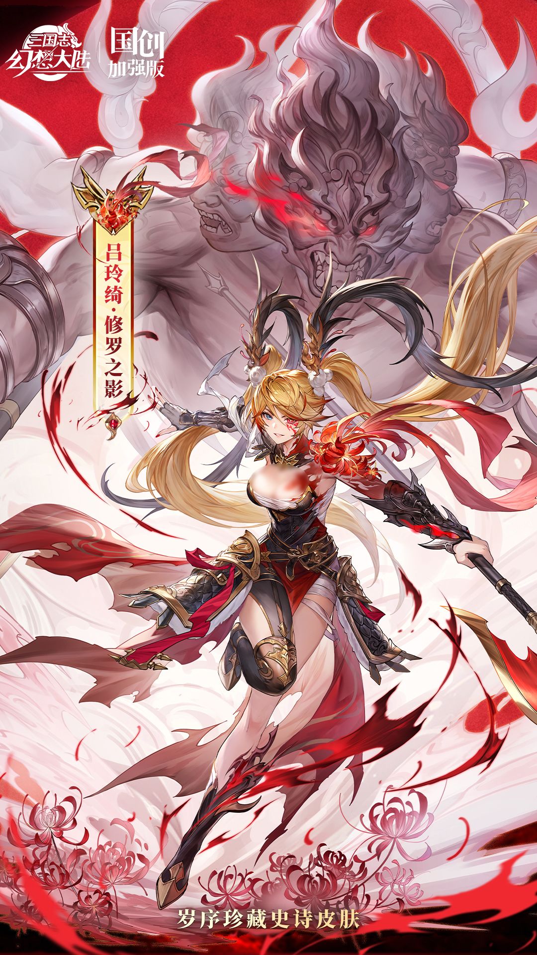 生平欲怒逞豪雄,貌似修罗气吐虹。香香又来爆料了!吕玲绮岁序珍藏史诗皮肤将会在2024年12月21日正式上线!今天先来欣赏一下这款全新的皮肤:吕玲绮——修罗之影。