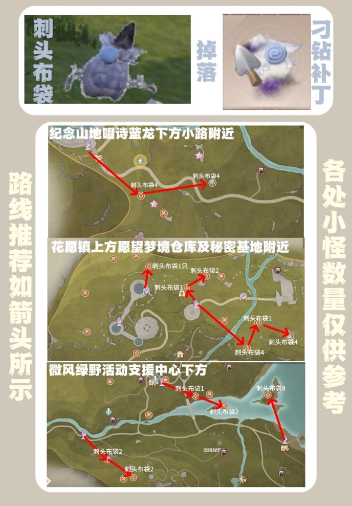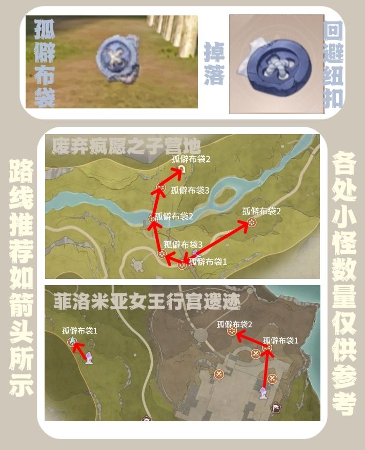 ps:①地图上其他标注的点位,是有怪出没但并不是这里所需的小怪,可以忽略。