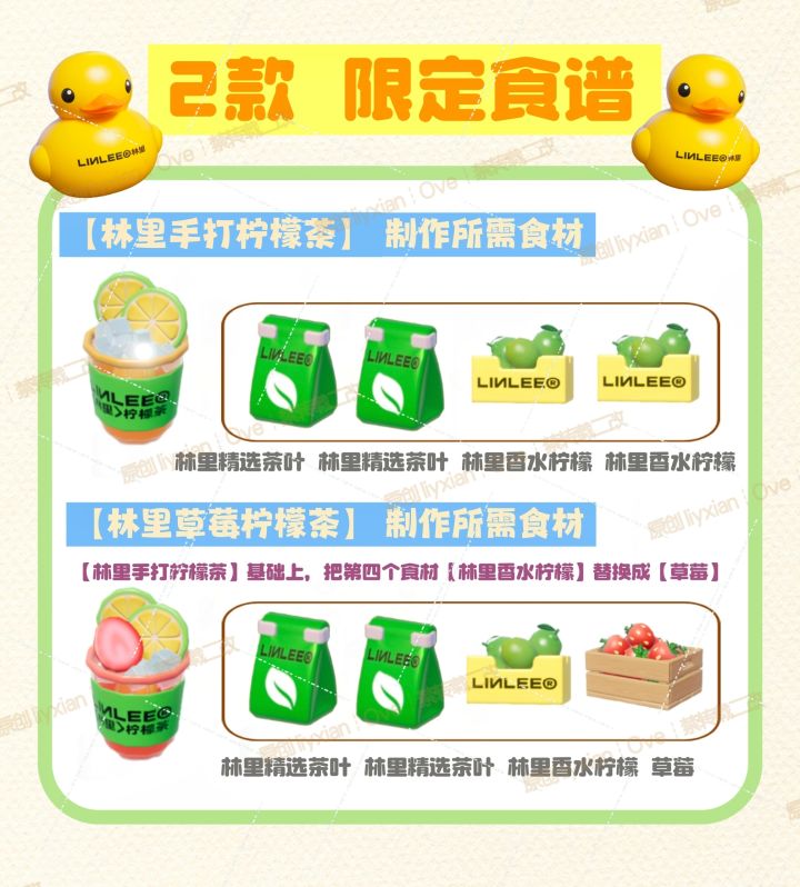 2款限定食谱:【林里手打柠檬茶】和【林里草莓柠檬茶】