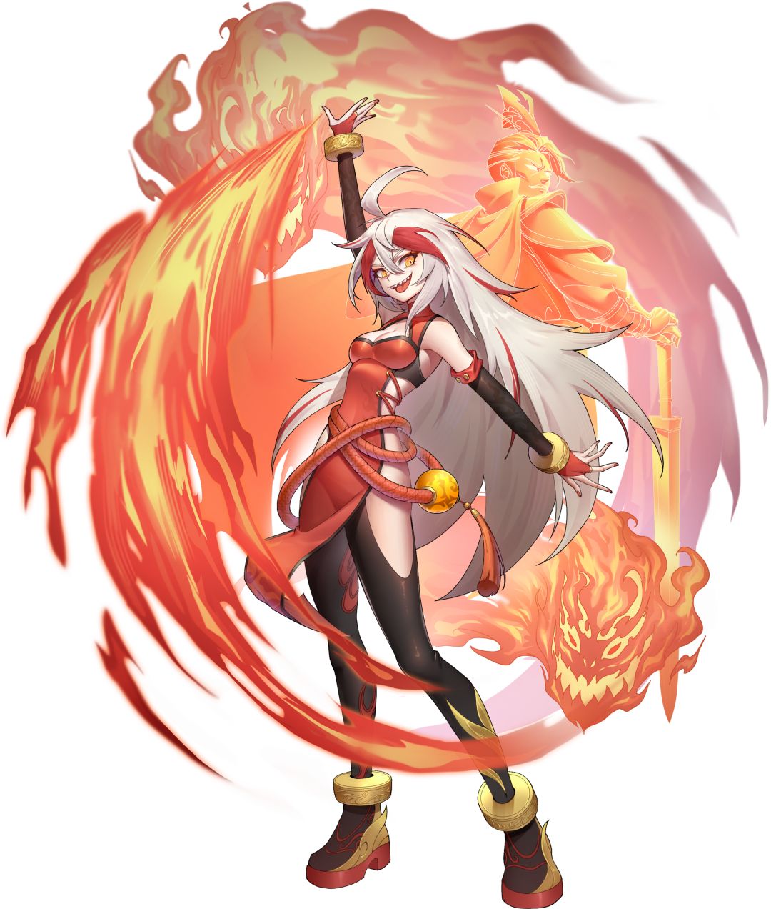 可以造成群体伤害,亦可锁定血线较低的敌人造成单体伤害。除此之外,她的技能还可以为敌人附加【灼烧】Debuff,可以与有相关效果的英雄进行搭配组合。