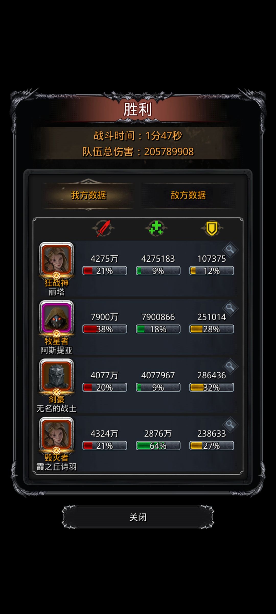 但关于治疗抑制装备的问题,小萌新的建议是大可不必刻意携带,只要我方除牧星者外的全员都携带了防御特效的装备,boss的吸血效率是完全比不上我方输出效率的,所以小萌新建议我方角色全力输出,不必纠结治疗抑制的问题。