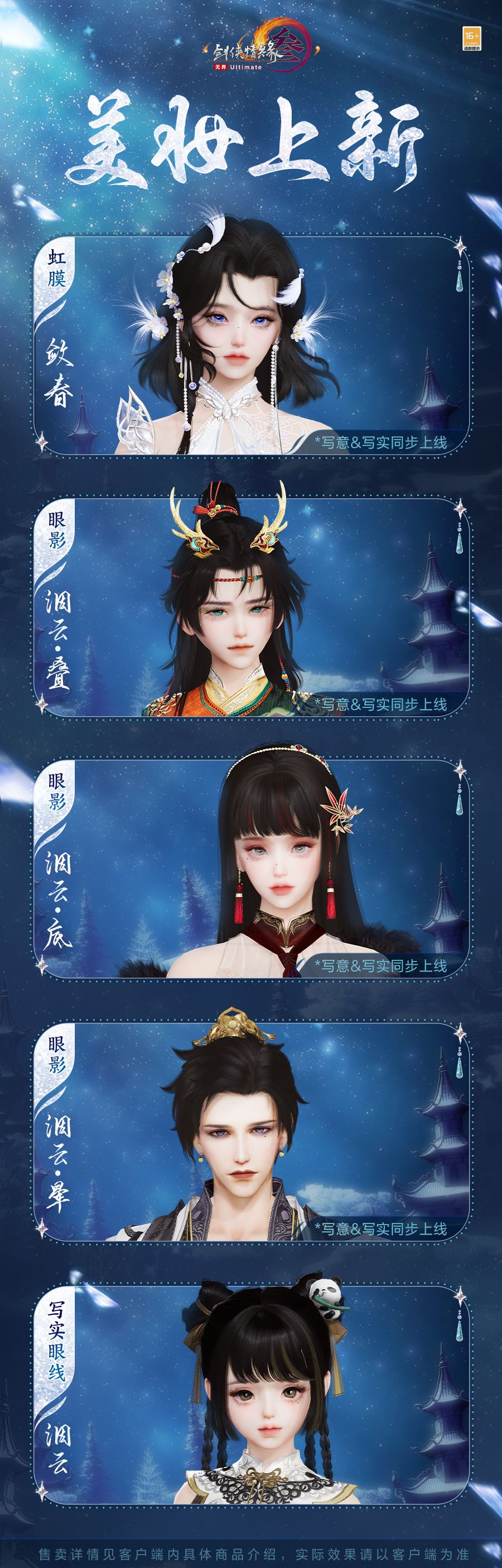 多款写意与写实妆容精致上新,为侠士的昳丽姿容提供新元素!“敛春”意绪低诉,春去难舍,留谢人间草木;“洇云”轻晕洇染眸角,柔柔化开云雾,风采独具!