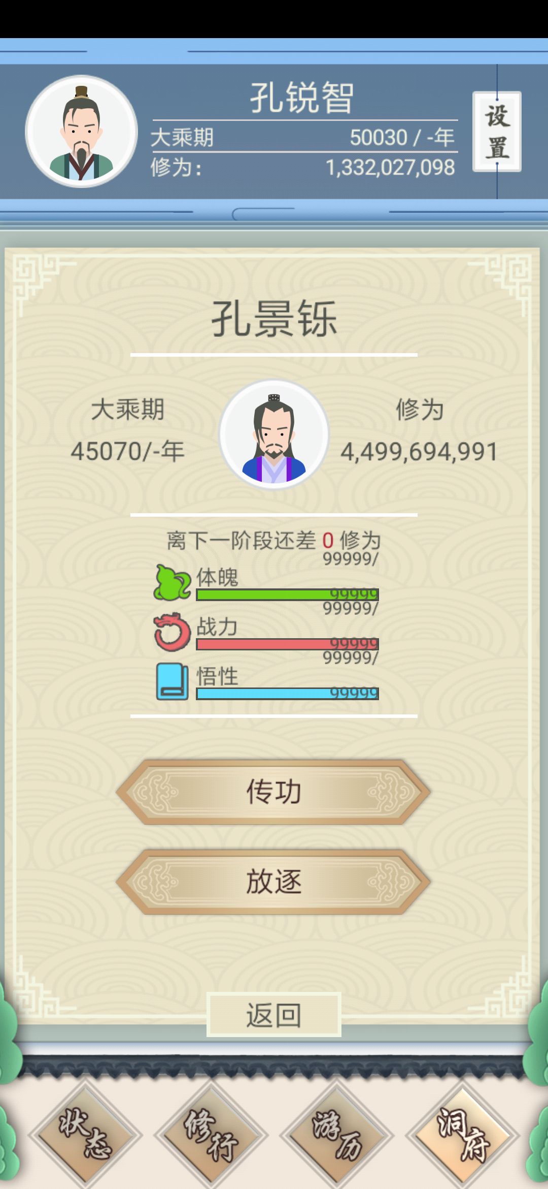 不要怀疑,我没开任何程序,只要你爬到大乘期,只要你能养起一个大乘期的孩子,你就可以利滚利无限养到10个大乘期的孩子,这样点一次10年就是250w,无限点10年后你也可以像我这样没有修为限制想买啥买啥,当然前提是你能升到大乘,并且养出一个大乘期的子孙