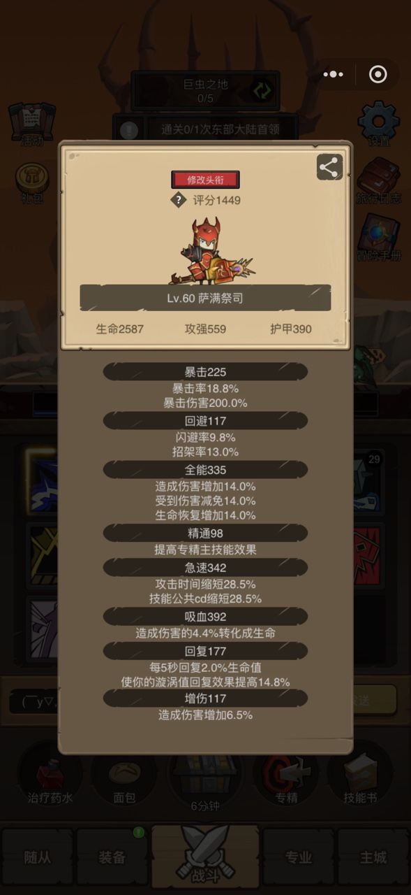 5.右上角的冒险手册尽量跟着做,跟着上面的养成来走,达到冒险手册全部要求后,基本不可能卡本。