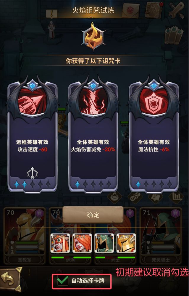 开局诅咒卡三选一。初期建议取消勾选“自动选择卡牌”