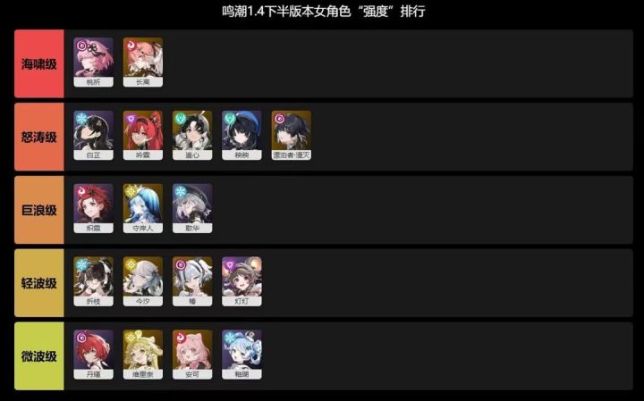 海啸级仅有两个角色,四星的桃祈和五星的长离。在当前版本中,她们堪称最强,即便 2.0 版本推出新角色,暂时也无人能超越。