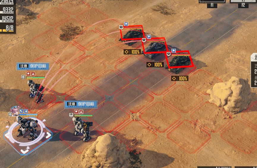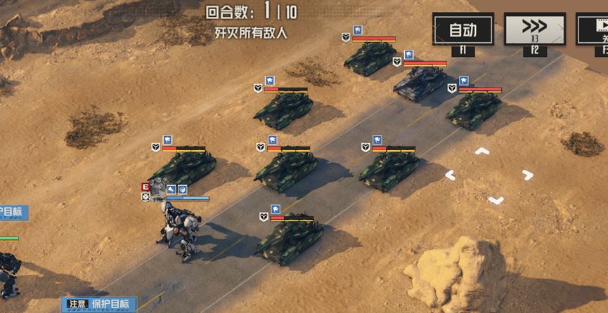二是本关敌人血线会先被压低,然后再由警戒攻击将其消灭,如果没有帕洛玛先前的范围攻击或者说敌人是四部位而非坦克,那么警戒攻击都是无法将敌人消灭的,所以我们更应关注范围攻击而非警戒攻击