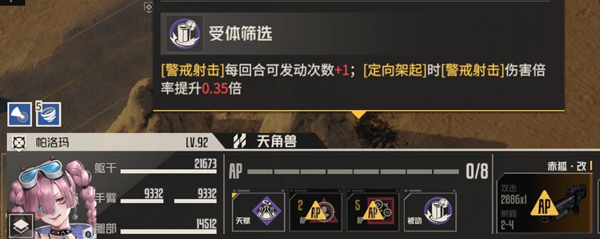 一是架起获得的远射程,使得帕洛玛的警戒攻击范围非常大,射程增加并非帕洛玛独有,就像我们不会说娜塔莉亚是警戒狙一样,帕洛玛同样不是一个警戒狙