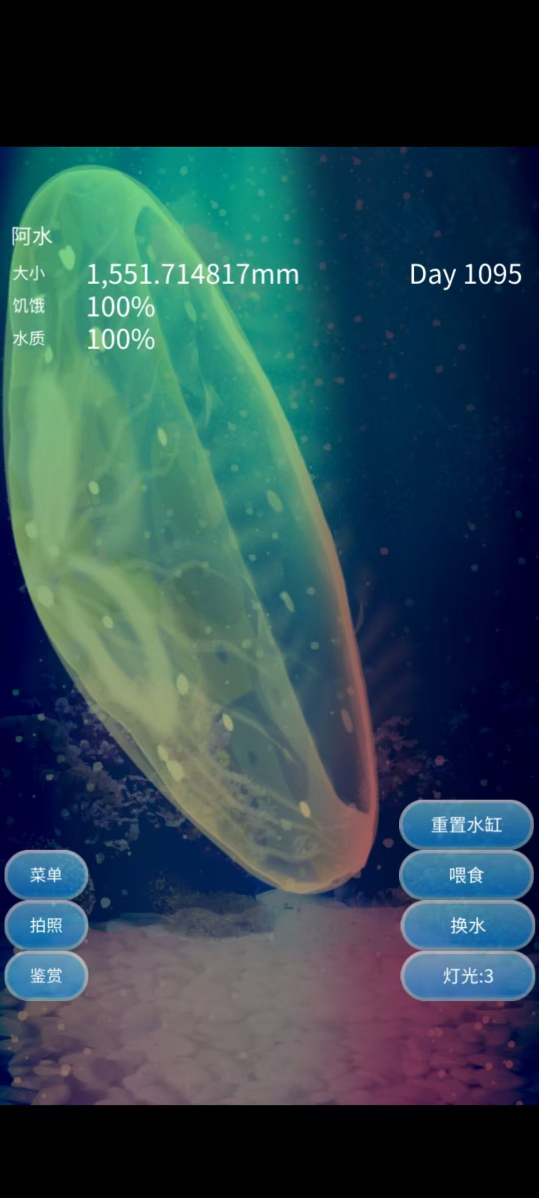 我一开始养水母没多久就死了,但是给我妈妈推荐了这个游戏,让她养个电子宠物,没想到已经三年了。
