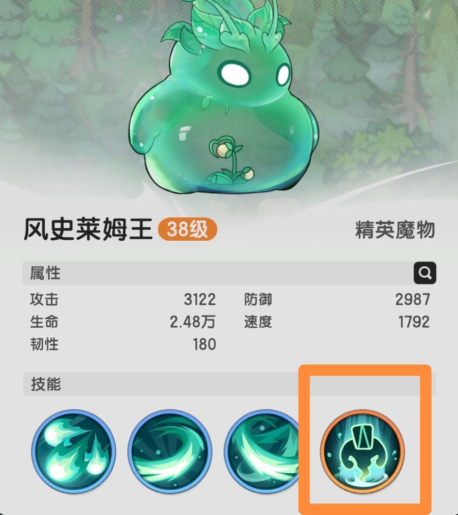 图四,部分怪物有属性抵抗和克制,可以通过点击怪物打开怪物面板,怪物技能会叙述相关属性。
