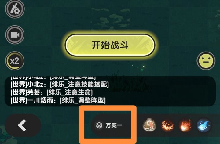 图二,战斗开始前,点击屏幕下方,方案名称,即可预设编辑方案。