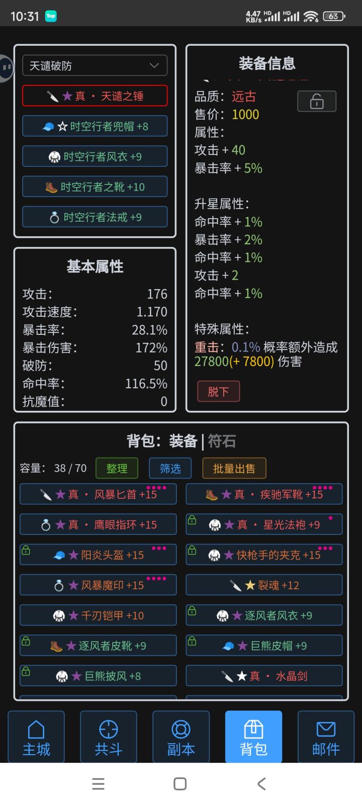 打法:开局30s内锤中,锤不中重开,锤到不到70%血为止。 接下来换攻速套,两分钟就刮过去了