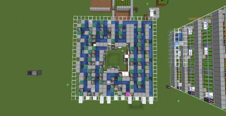 箭头指向的方向为水流的终点,多余的种子就从这里流走销毁气泡柱为起点(起点终点都做了两个,因为在不更改村民站位和投掷器位置的情况下只能做到这种情况了,因此布线特别乱)