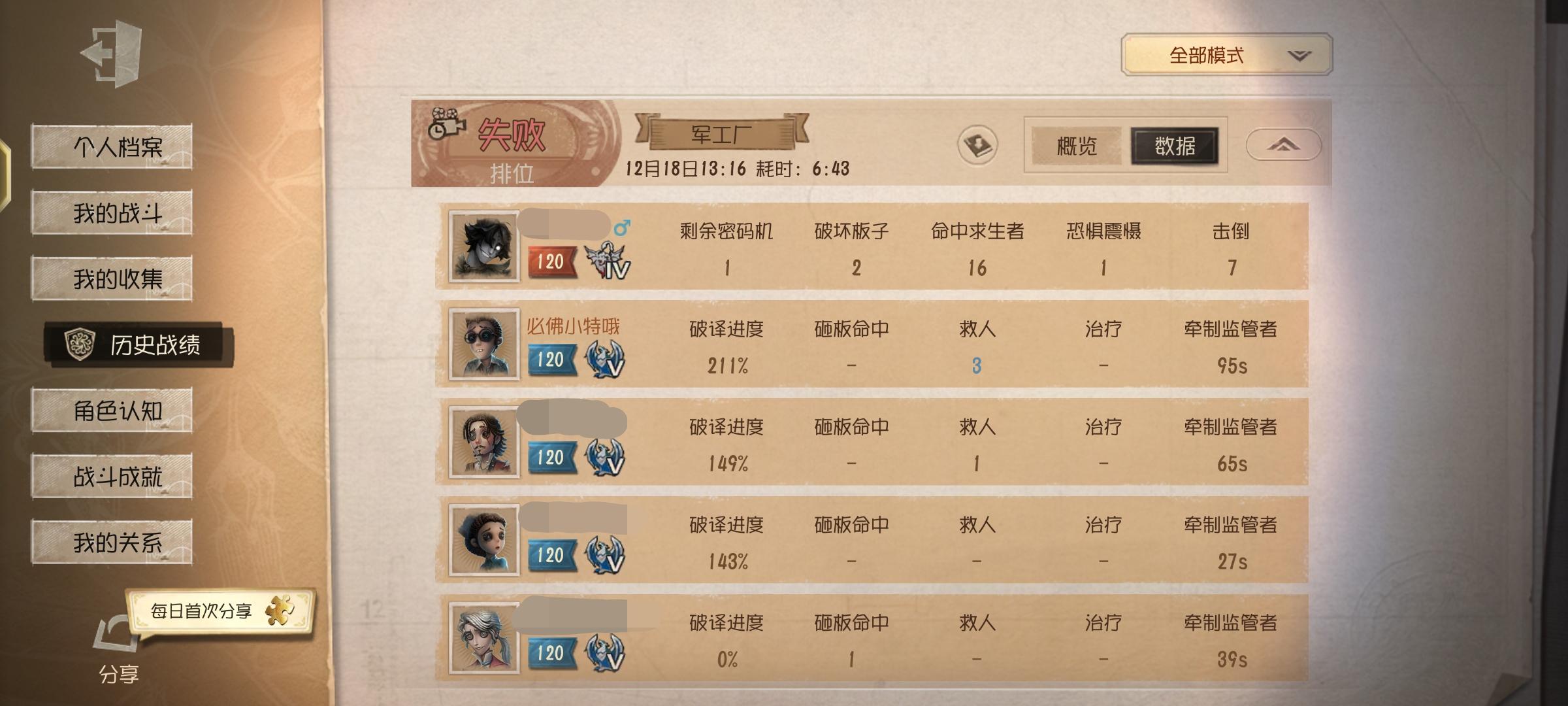 单排的秘诀是什么?监管追我我遛穿,监管抓队友我辅助,尤其是最后刚打的那一场,为什么都输了还加分?请看数据,修的最多,溜的最久,救人最多,我不加分谁加分?