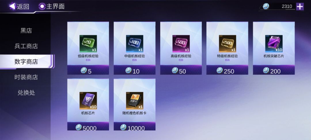 6、数字空间:这个对于提升战力也是比较重要的,基本上需要每天参与挑战,有机会获得机核芯片、机核经验、机核卡、机核突破芯片等重要奖励;数字商店也会售卖机核经验、机核芯片等游戏物品额外帮助玩家在武装系统更好的提升战力。