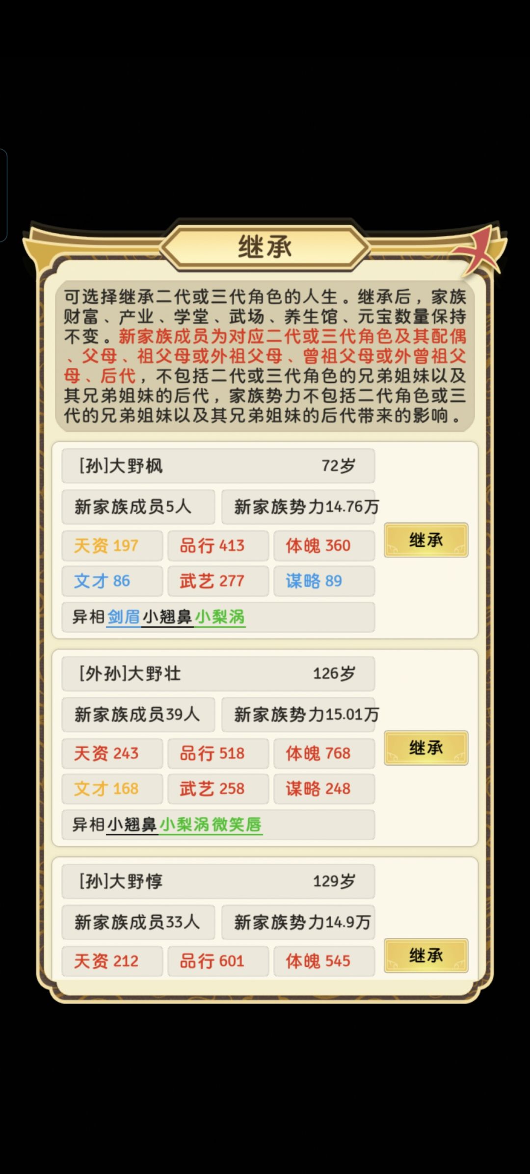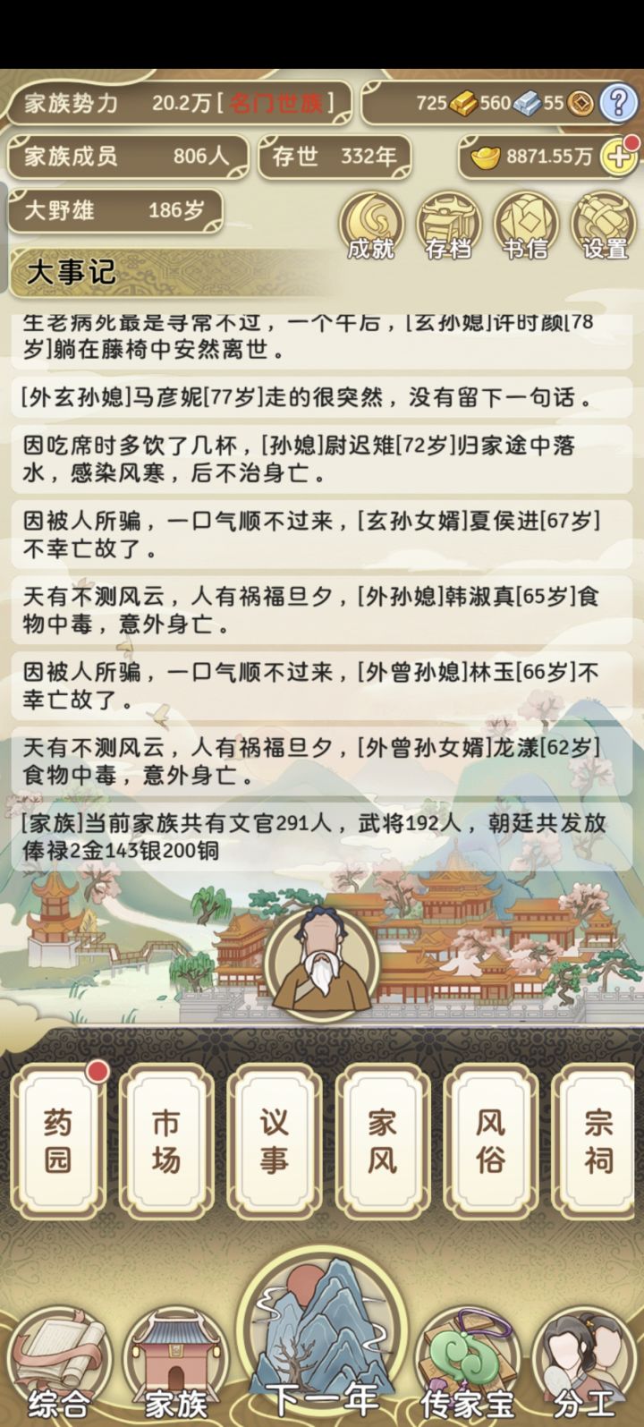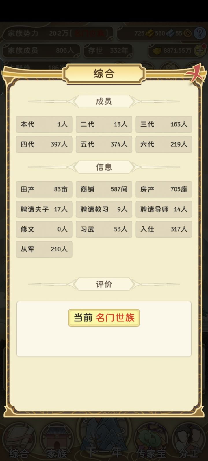 好了。此游戏毕业。332年名门世族