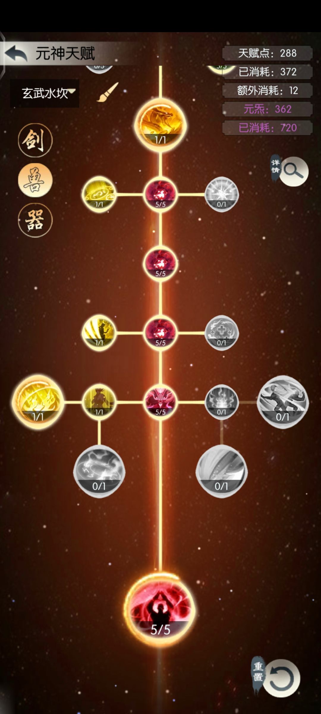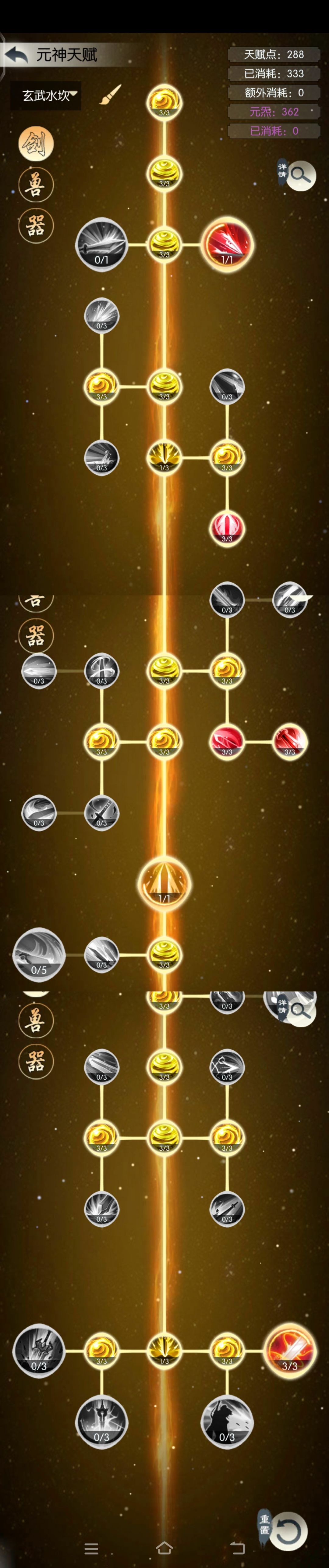 如果你血量只差几亿(按最后一关我用减攻法则时受到的159亿伤害),请前往低阶门派获取“三转重元功”尽量升高等级,替换掉血炼神光,可增加血上限数亿,此时,需携带6回合仙兽吸血技能(可将兽天赋改为右边,但不使用先天命技/后发制人,只为了多一个技能格子)。