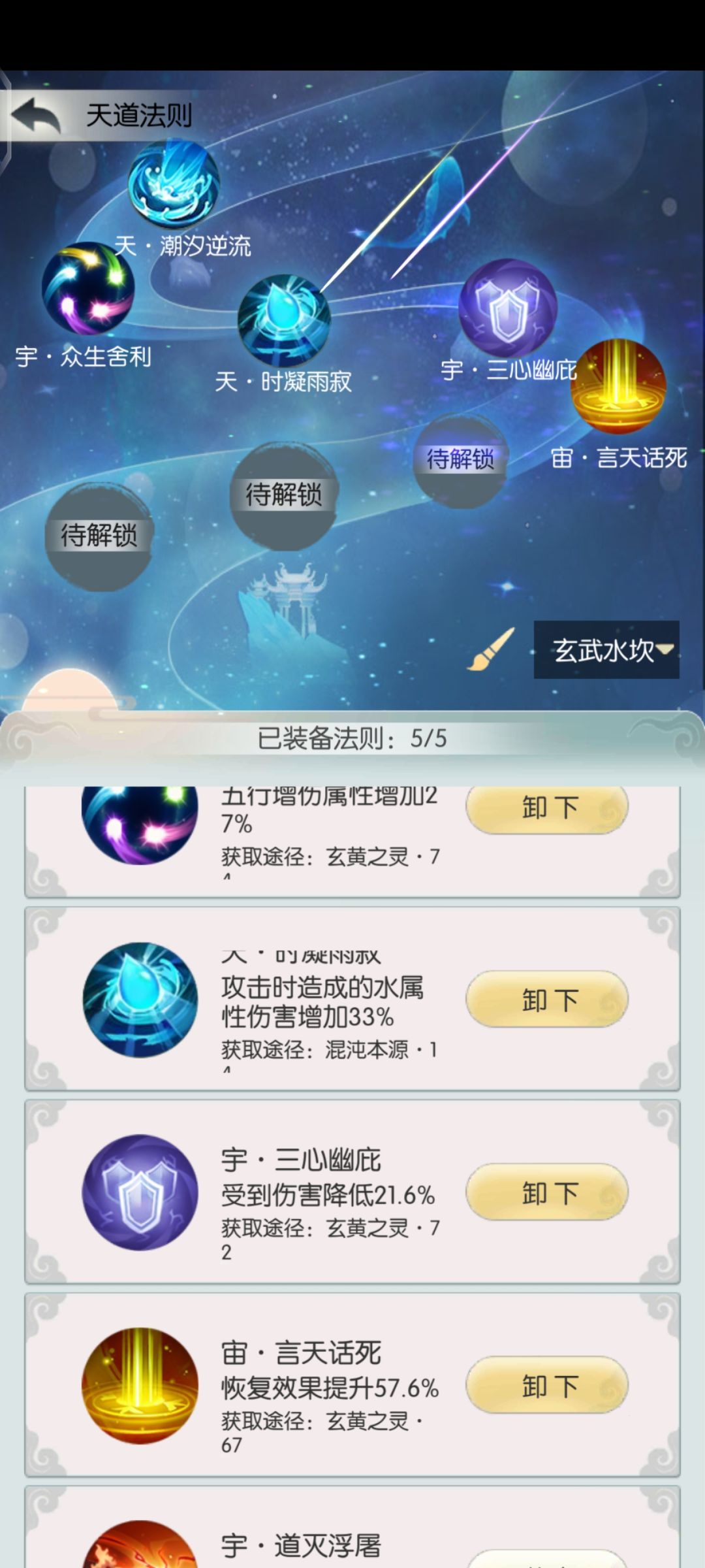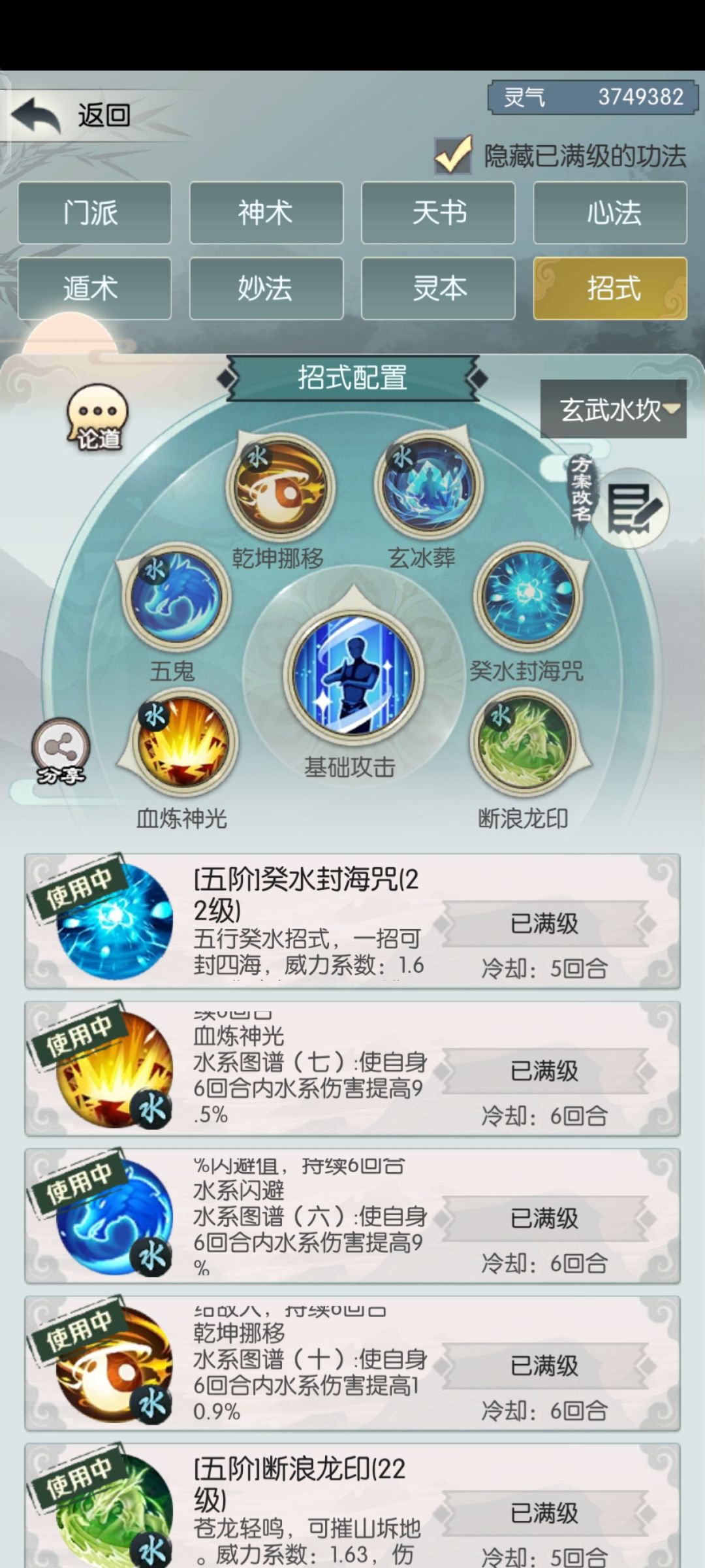 本体技能:血炼神光-五鬼迷踪诀-乾坤挪移(神垕)-玄冰葬(无间)-癸水封海咒-断浪龙印(凤鸣)
