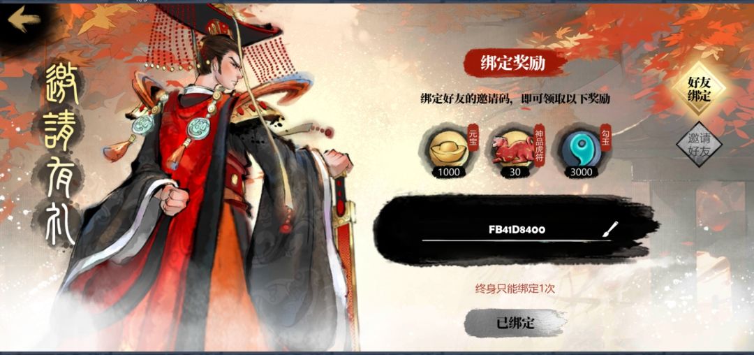 填写邀请码领虎符元宝