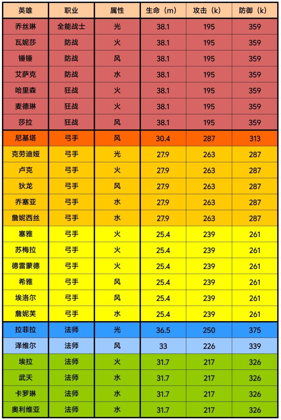 原来我认为同种职业的基础属性都是一样的,汇总之后才发现英雄的基础属性也是有差异的。