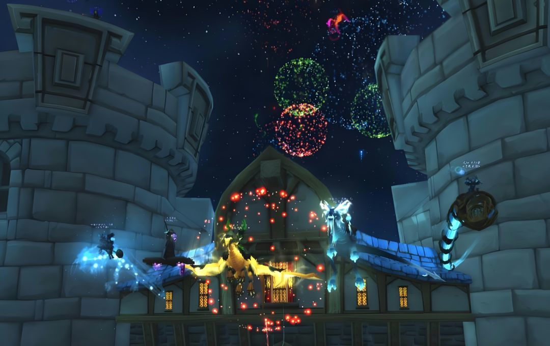 与基友一起记录下暴风城燃起春节烟花的瞬间,共同许愿来年的大秘境钥匙一把不黑,也同样是年味十足。