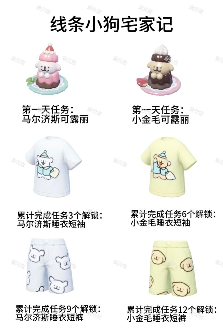 累计完成任务12个解锁:小金毛睡衣短裤